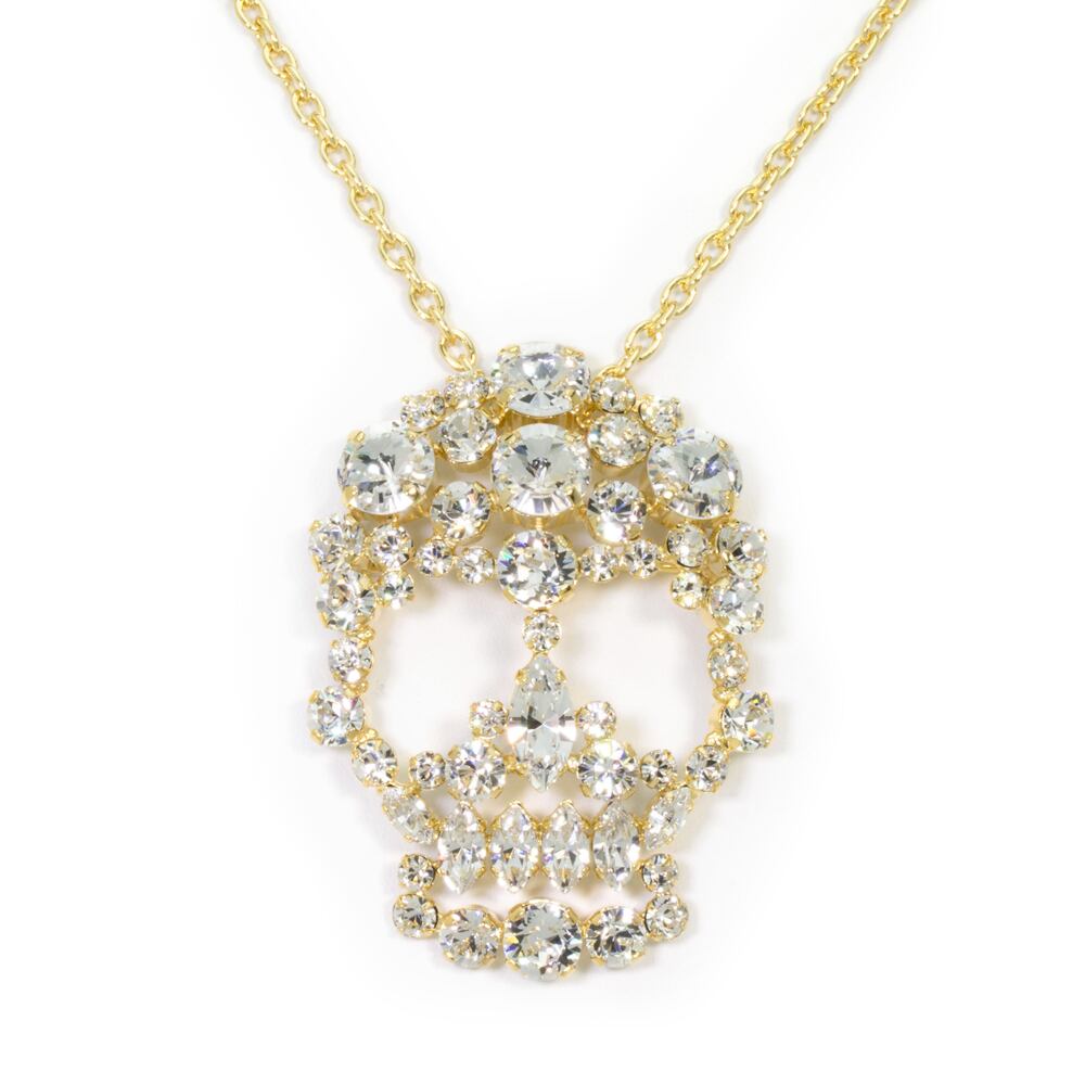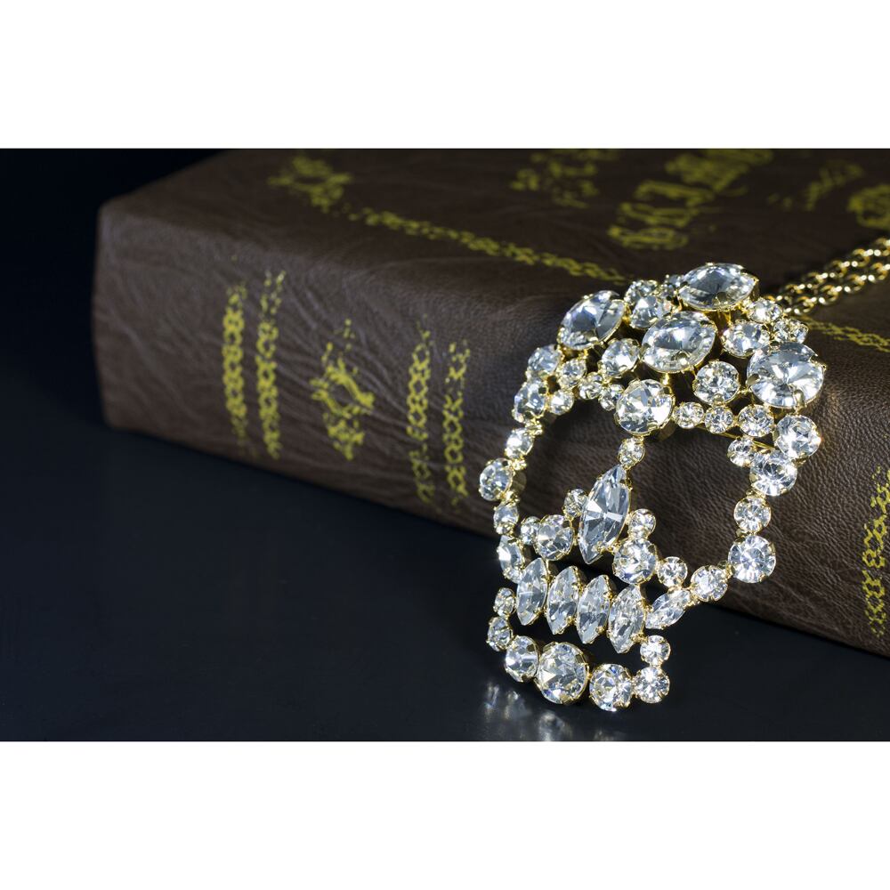 ゴージャスなクリスタル・スカル。見た目の大きさに比べて、重さも軽く、金属部分の輪郭もほとんど見えず、独特な透け感は軽快感も感じさせます。