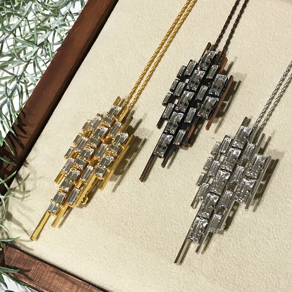 レンガを積み重ねた壁の一部をジュエリー化した作品。