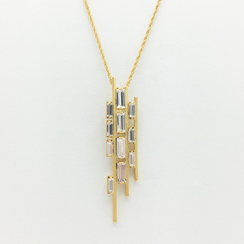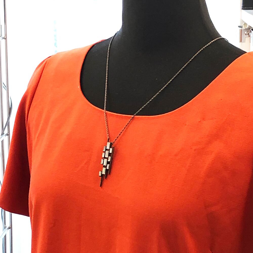 レンガを積み重ねた壁の一部をジュエリー化した作品。