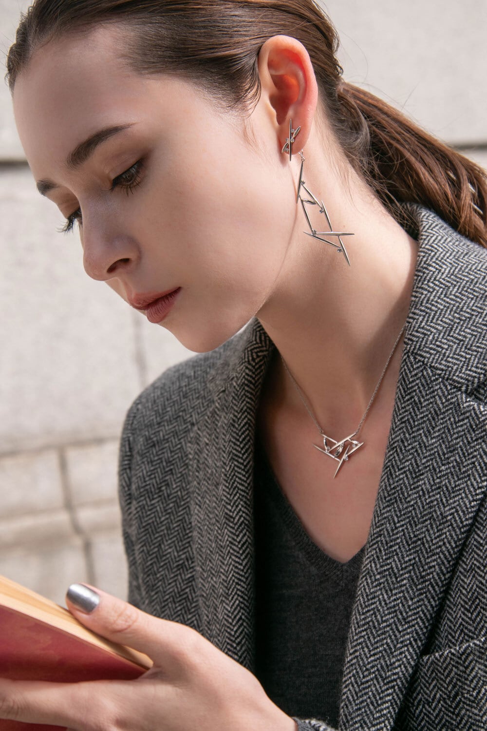 人体の神経細胞[neuron]を抽象化したデザイン。身体の一部のように一体化したデザインにするため、ペンダントトップの両脇からチェーンを吊るタイプになっています。
