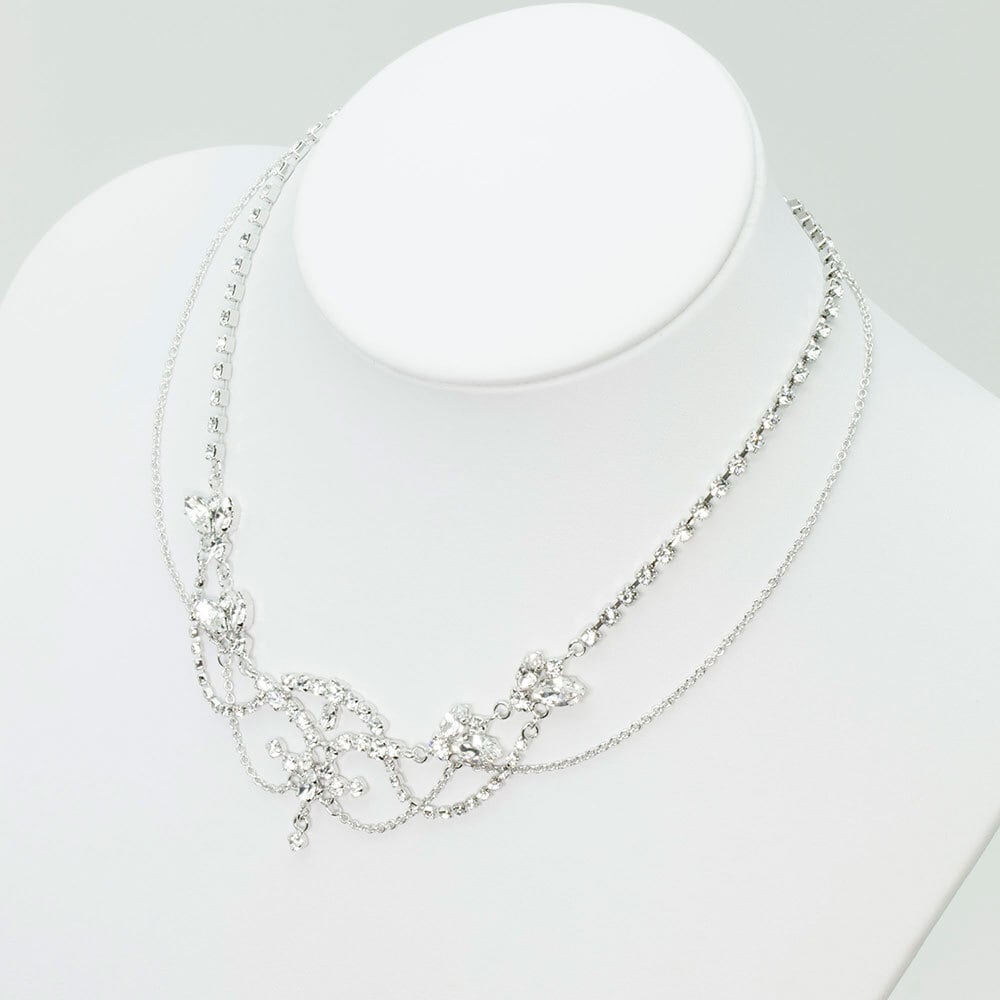 繊細なレースのように透け感が特徴あるデザインのネックレスです。ウエディングドレスにレースがあしらわれているコーディネートには、相性抜群で人気があります。