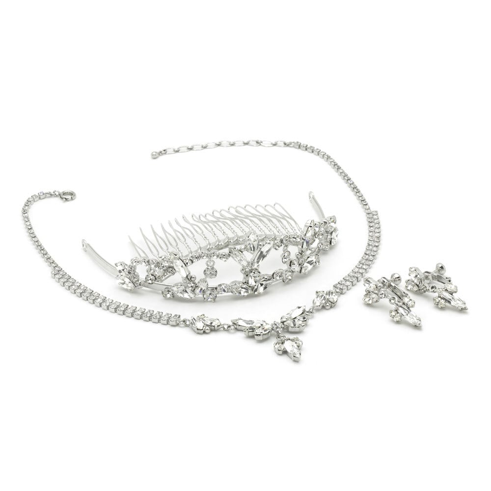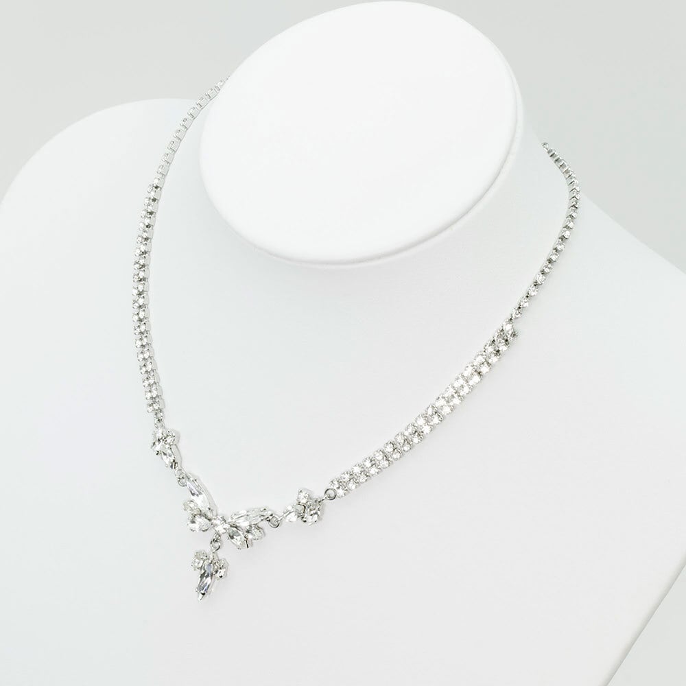 細長いマーキスのクリスタルがキレのある輝きを演出したネックレス。スタイリッシュなドレスにお勧めします。
