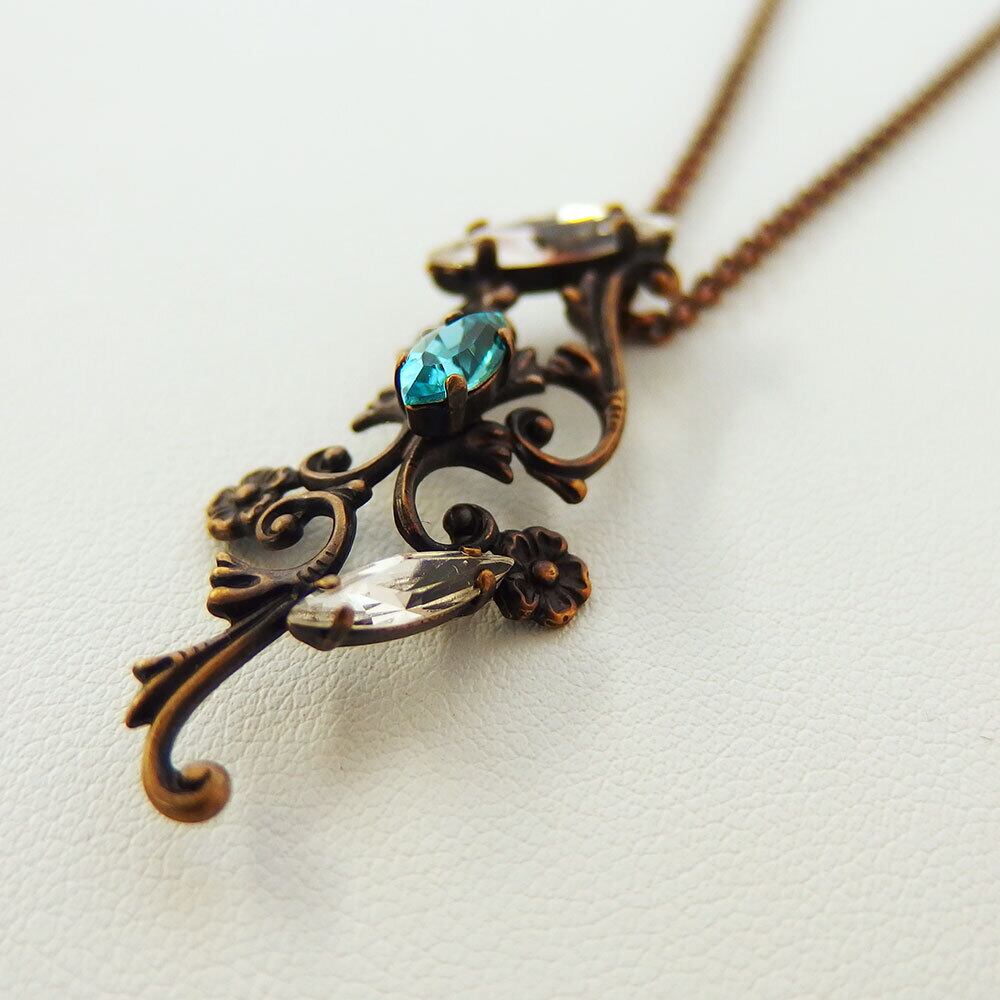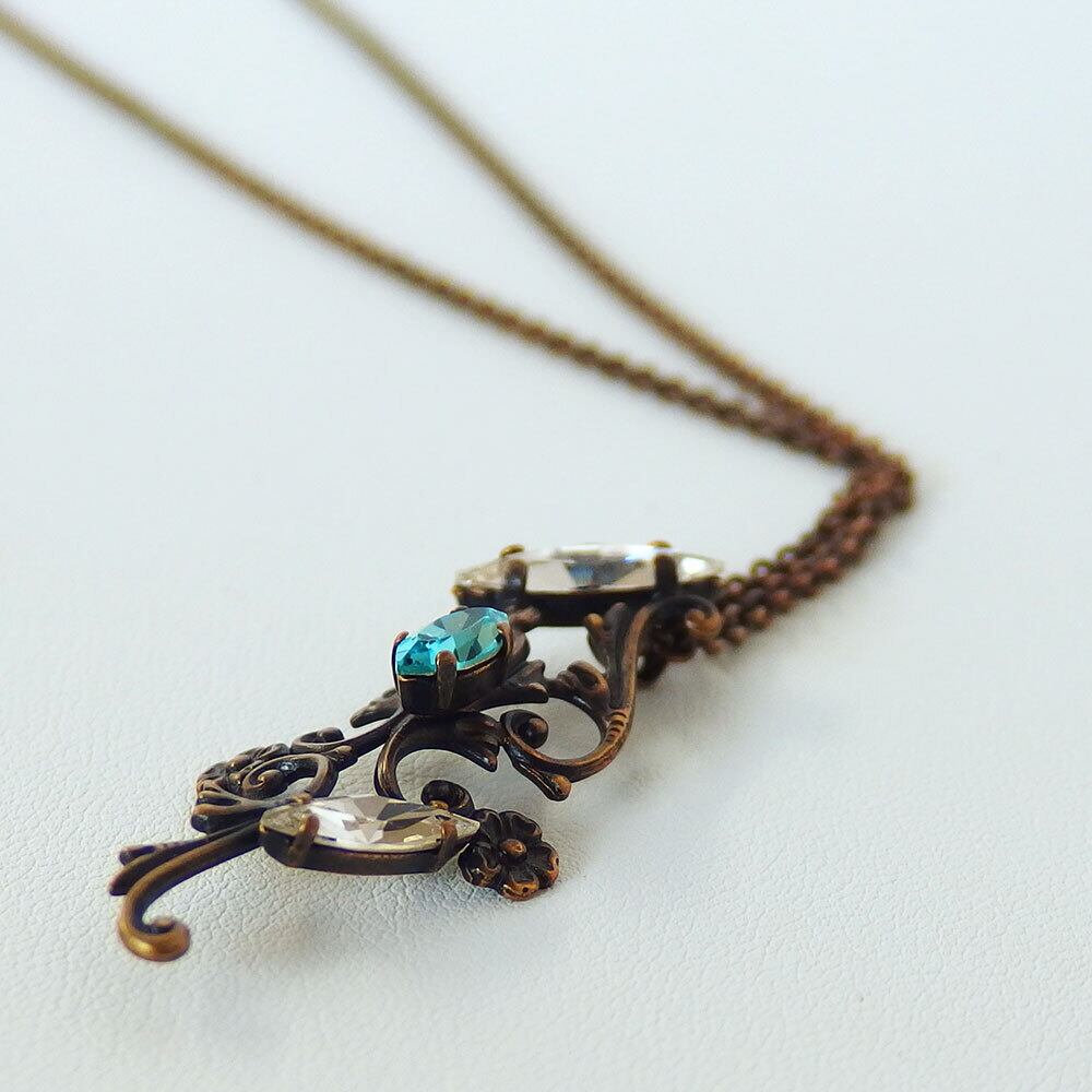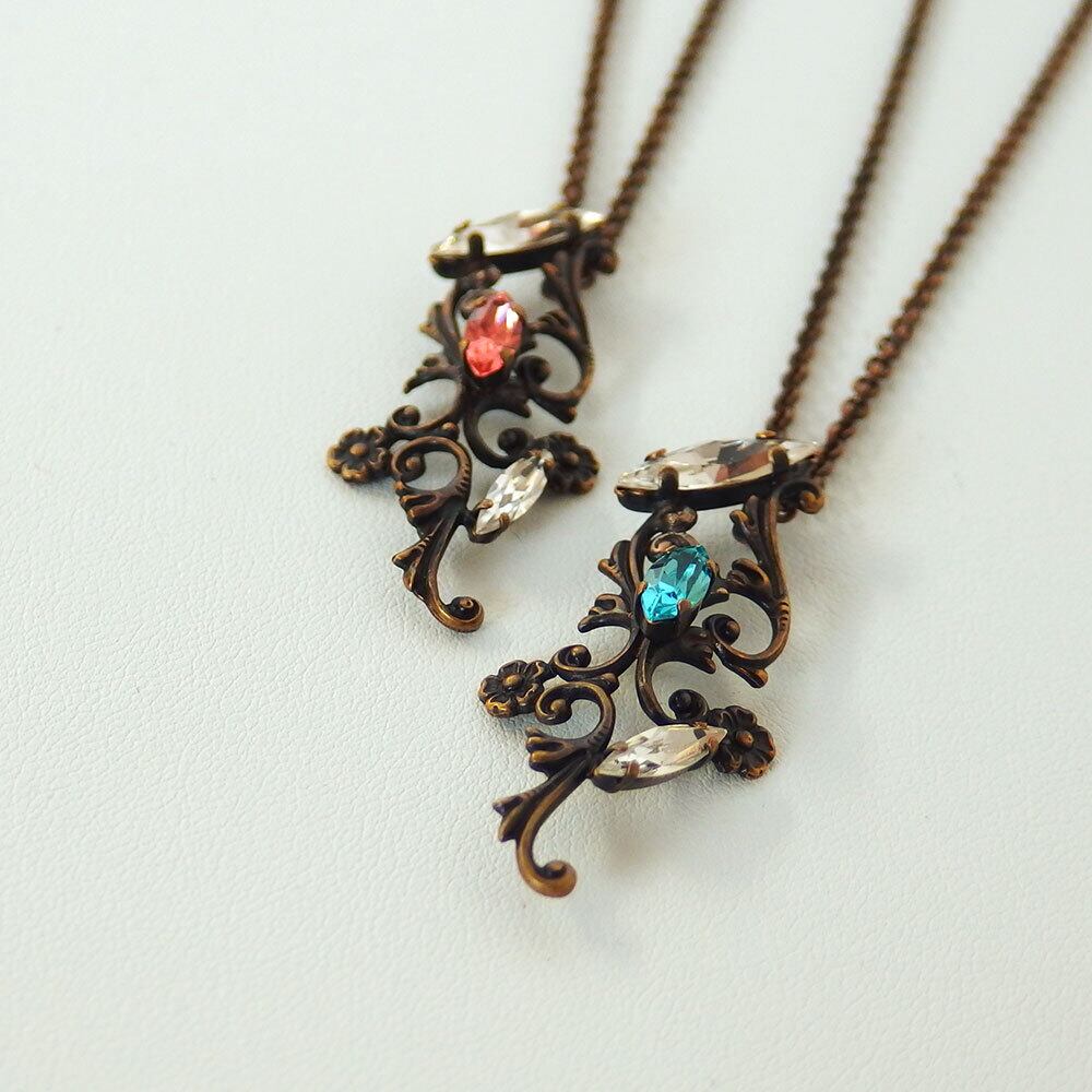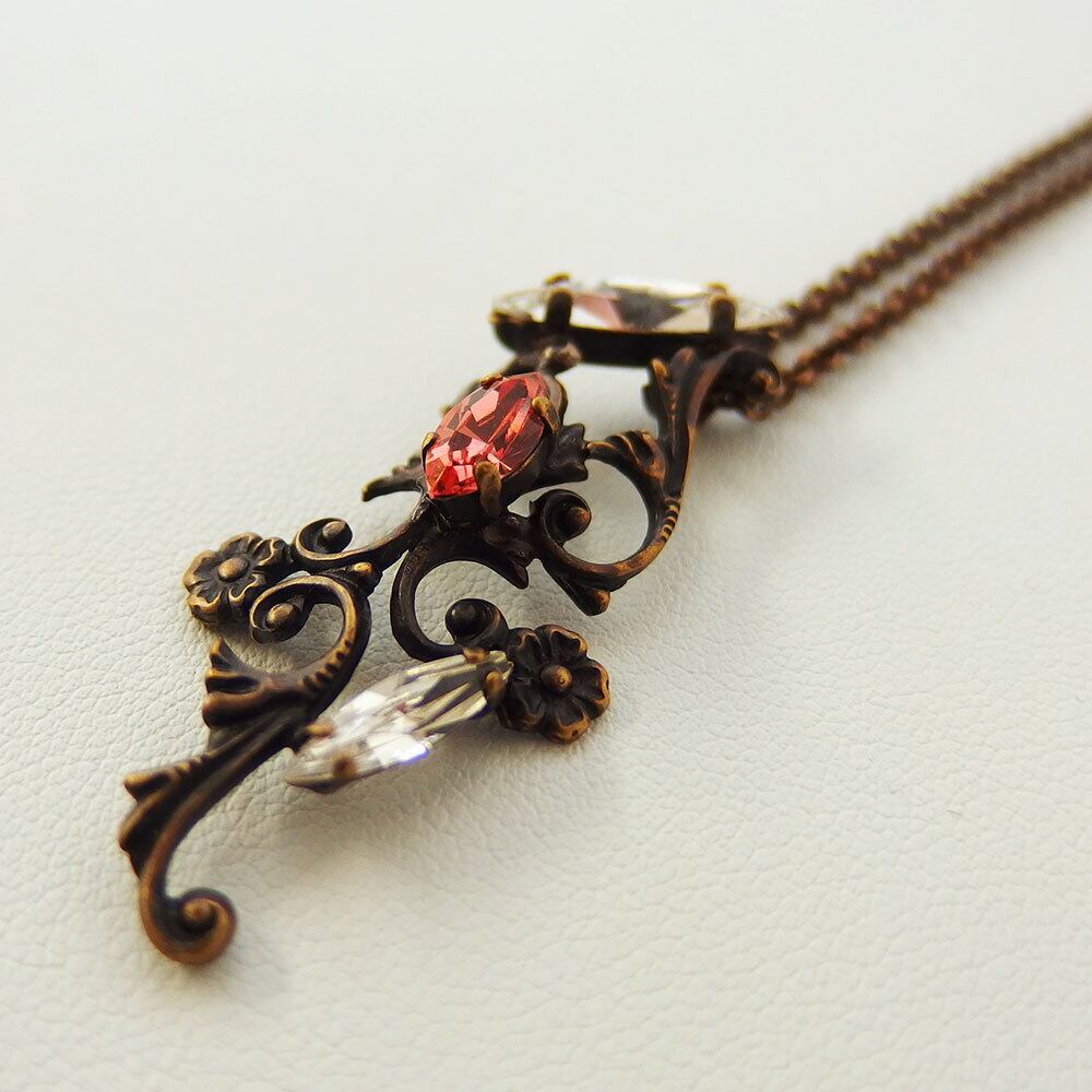本体:真鍮、丹銅、クリスタルガラス/チェーン:真鍮/古美仕上げ