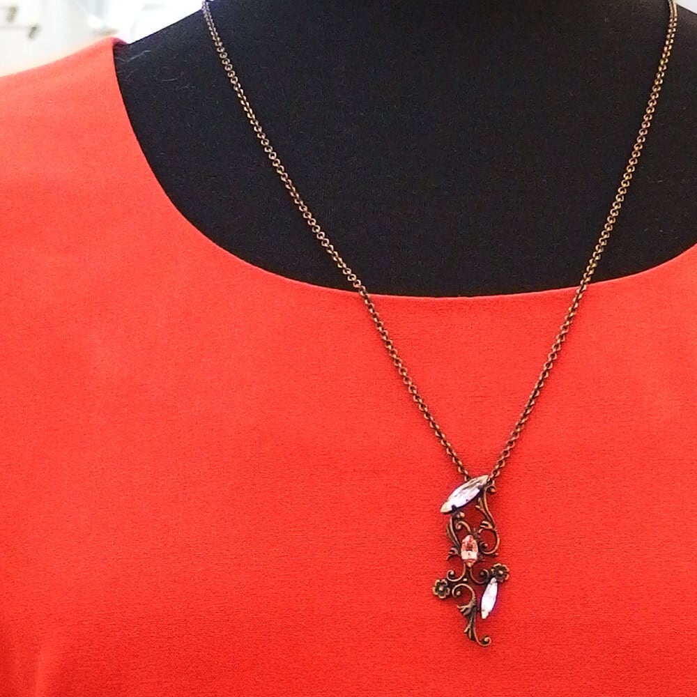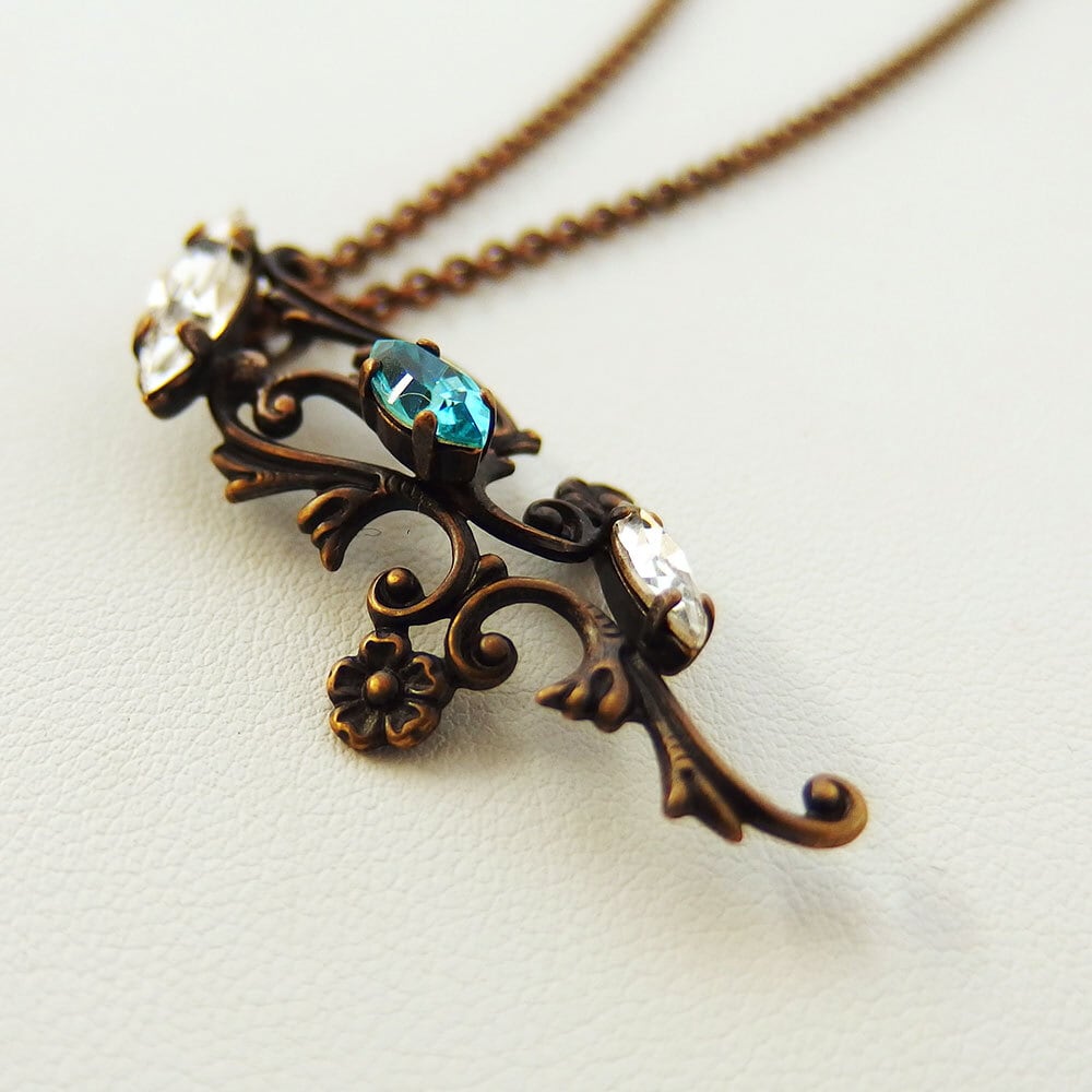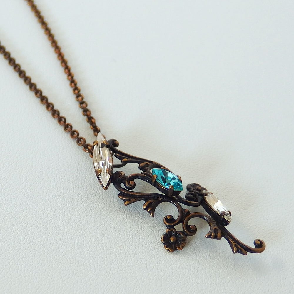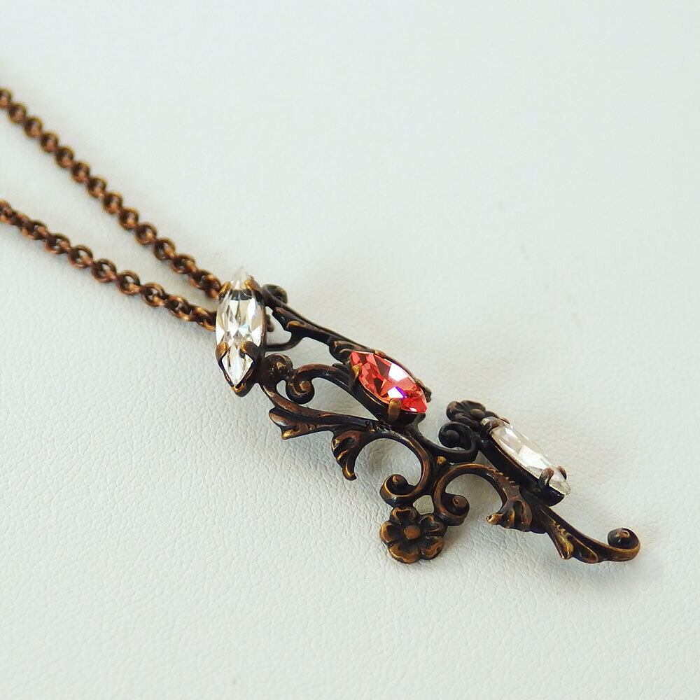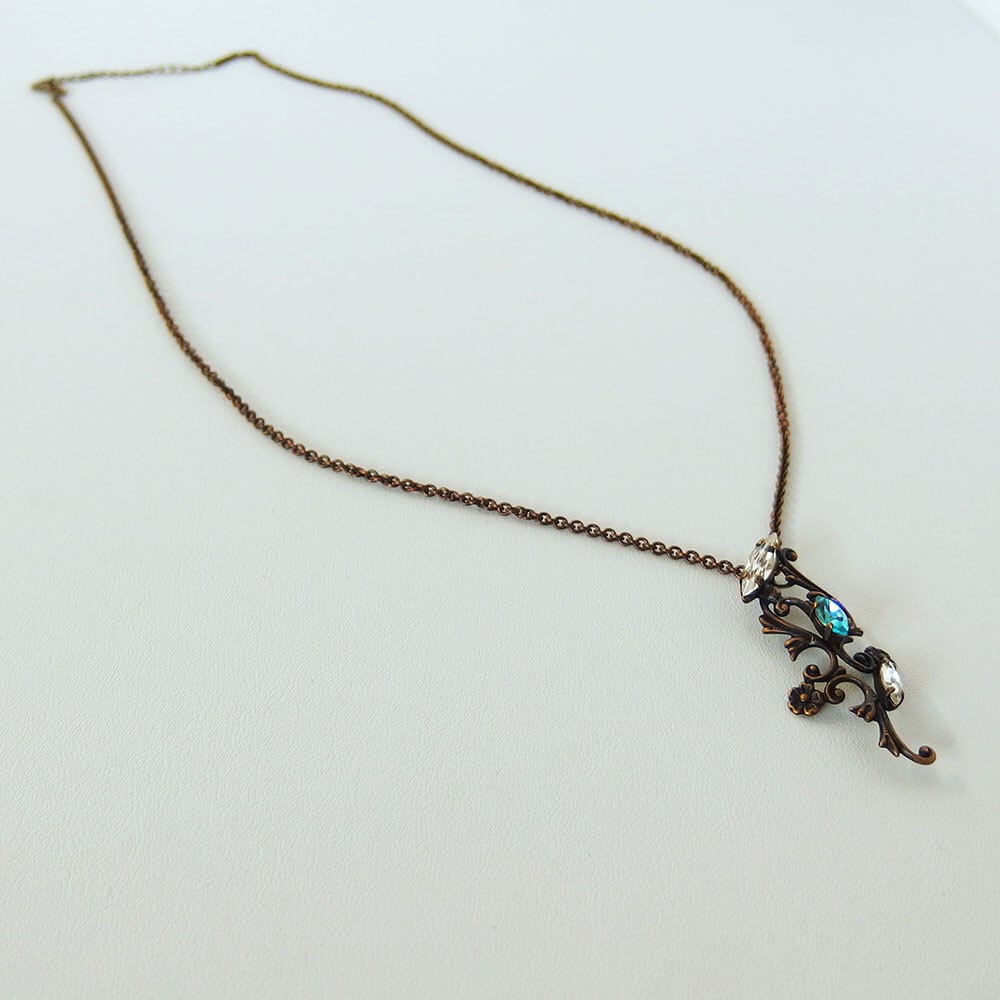 本体:真鍮、丹銅、クリスタルガラス/チェーン:真鍮/古美仕上げ