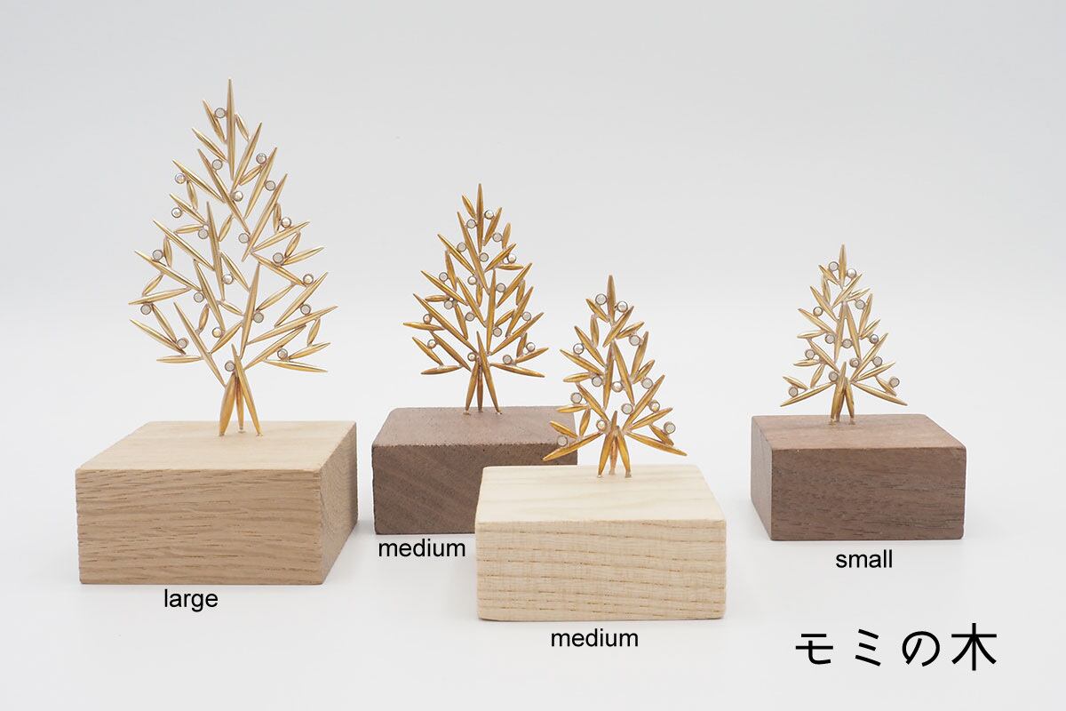 土台に使用している木は、北海道旭川市にある木工所「ササキ工芸」から出る端材を購入させて頂き利用しています。そのため、仕入れる時期により、樹種、形などがバラバラなので、ご了承ください。また、本体の真鍮のtreeを挿す部分も、樹木の目により、中心から少しずれることもございます。基本的には、土台の中央より奥の方かつ中心を狙って配置しています。