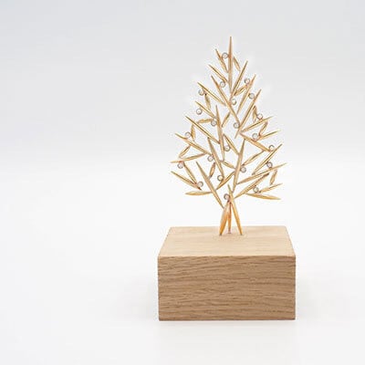 土台に使用している木は、北海道旭川市にある木工所「ササキ工芸」から出る端材を購入させて頂き利用しています。そのため、仕入れる時期により、樹種、形などがバラバラなので、ご了承ください。また、本体の真鍮のtreeを挿す部分も、樹木の目により、中心から少しずれることもございます。基本的には、土台の中央より奥の方かつ中心を狙って配置しています。