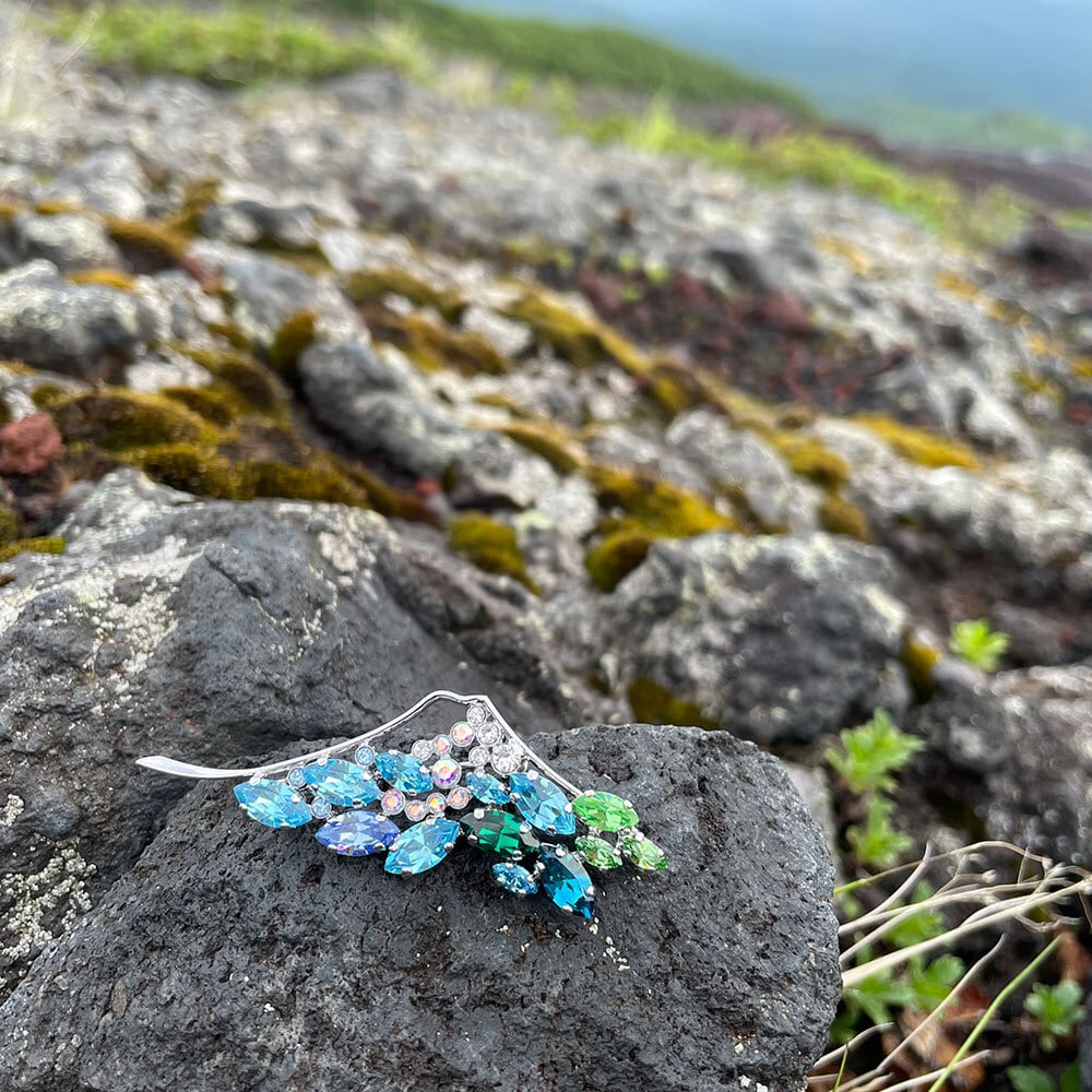日本の象徴的シンボル「富士山」。作家のMASAAKi TAKAHASHiが、富士登山を敢行するために、このブローチを「よせもの」でデザイン、製作し、0合目から山頂までの登頂を果たしました。